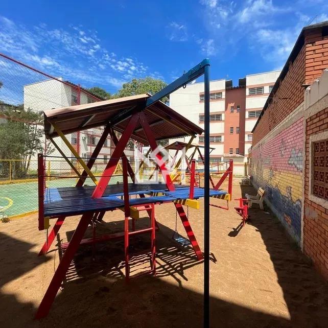 O edifício oferece portaria virtual, circuito interno de câmeras, zelador e salão de festas com churrasqueira, proporcionando segurança e espaço para convivência.