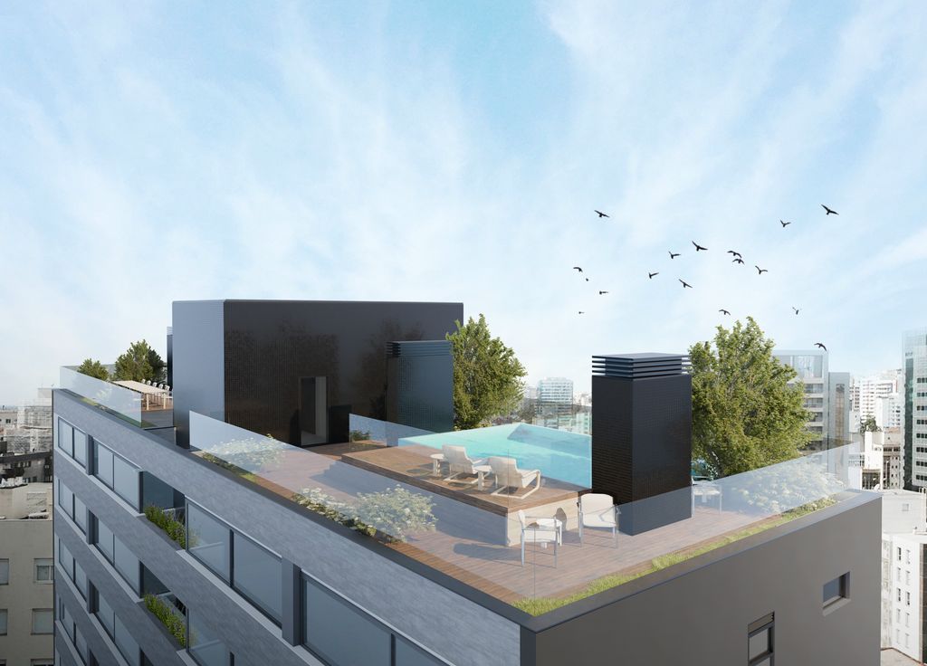 Rooftop com piscina, parrilla e jardim