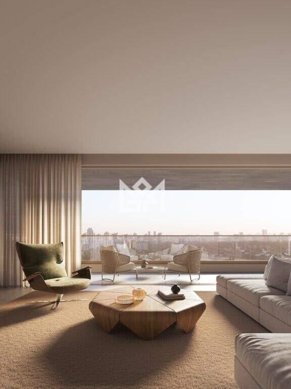 Este Apartamento Garden impressiona pela metragem extraordinária e pelo projeto voltado ao conforto absoluto. São 656,24 m² privativos, distribuídos igualmente entre 328,12 m² de área interna e 328,12 m² de área externa, proporcionando a experiência de uma casa suspensa com segurança e exclusividade.