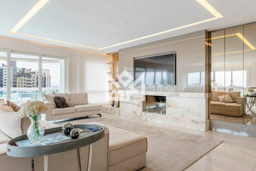 Apartamento à venda no bairro Bela Vista, Porto Alegre, com 201m² de área privativa. Conta com 3 suítes, sendo a master com hidromassagem, lavabo, amplo living para dois ambientes com lareira, sacada com churrasqueira e vista para o pôr do sol. Cozinha espaçosa, bem ventilada, com dependência completa. Localizado em andar alto, com excelente iluminação natural e acabamentos de alto padrão. Possui 3 vagas de garagem escrituradas e individuais. Condomínio com piscina aquecida, quadra de esportes, salão de festas e espaço gourmet. Localização privilegiada, com conveniências, segurança e qualidade de vida. Agende sua visita e conheça este imóvel sofisticado e exclusivo. Preço e disponibilidade do imóvel sujeitos a alteração sem aviso prévio.