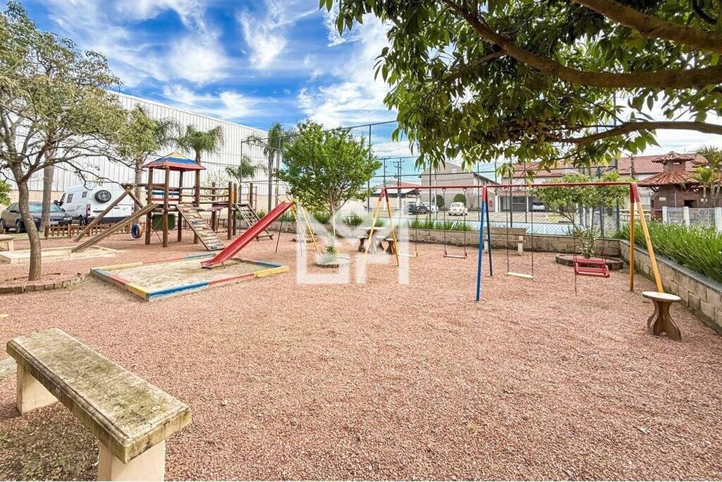 O condomínio fechado oferece infraestrutura completa, com piscina coletiva, churrasqueira, playground, quadra poliesportiva, salão de festas, espaço fitness e segurança 24 horas, com câmeras, interfone e alarme, garantindo tranquilidade para toda a família.
