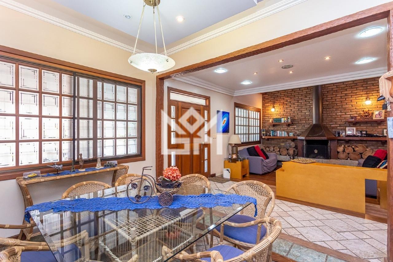 Casa residencial com 328 m² de área interna, localizada no bairro Guarujá, em Porto Alegre. A planta é ampla e bem distribuída, atendendo famílias que buscam espaço, funcionalidade e áreas de convivência integradas. O imóvel conta com 4 quartos, sendo 2 suítes, além de 3 banheiros, 2 salas e varanda gourmet frontal.