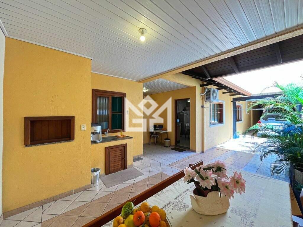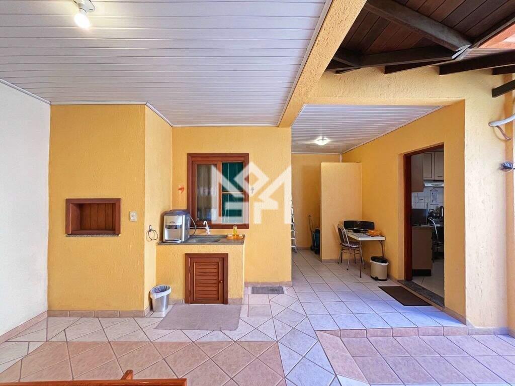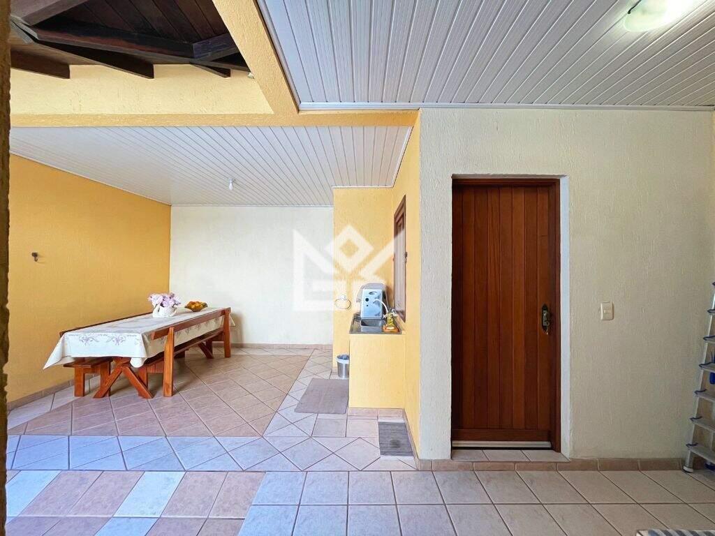 No pavimento térreo, a residência oferece living amplo para dois ambientes, lavabo, sala de jantar, copa-cozinha montada, além de quiosque com churrasqueira, lavanderia e sistema de água quente com aquecedor instalado, garantindo conforto e funcionalidade no dia a dia.