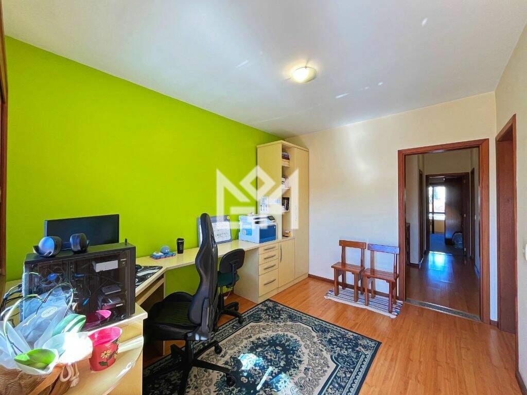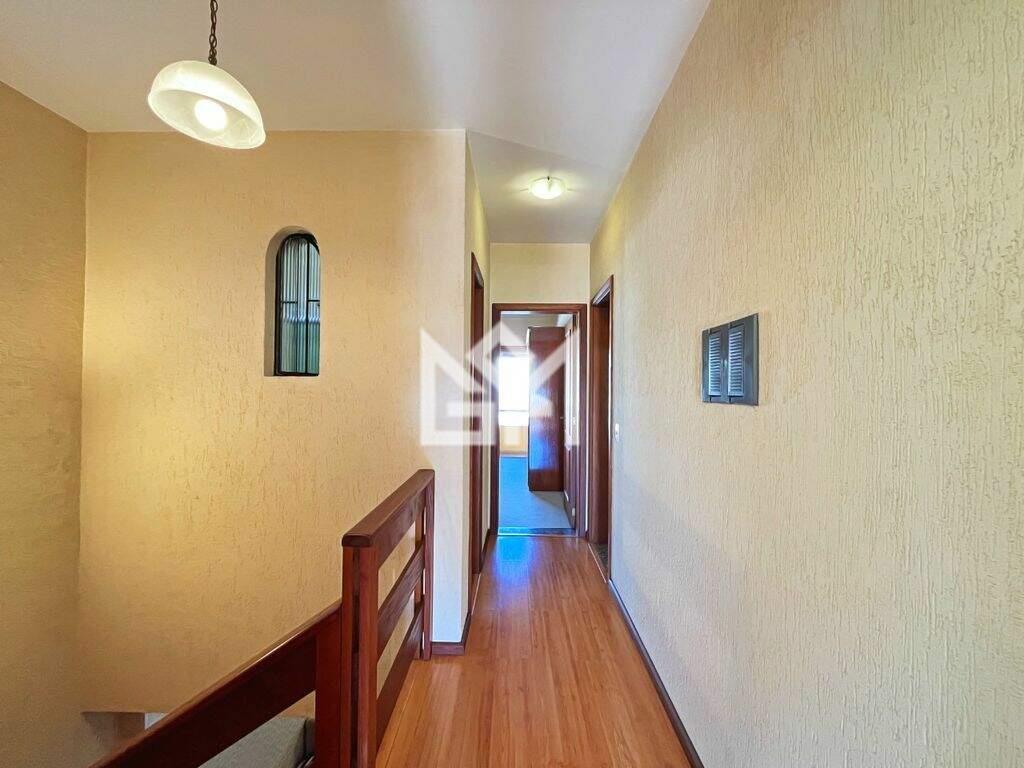 No pavimento superior, o imóvel dispõe de 3 dormitórios, sendo que os dormitórios frontais contam com sacada, suíte com hidromassagem, banheiro social e um amplo gabinete com terraço, espaço que pode ser facilmente adaptado como quarto dormitório, home office ou ambiente multifuncional.