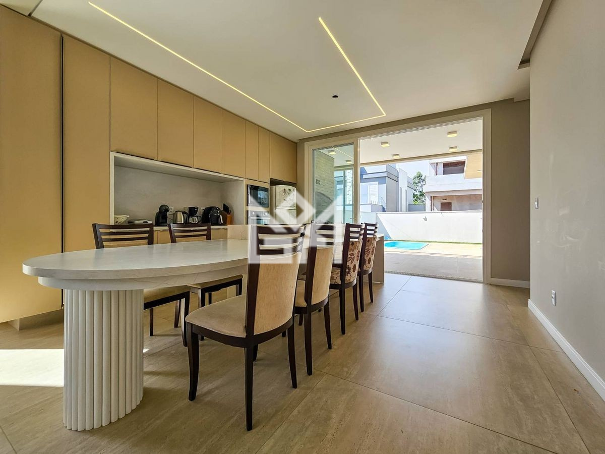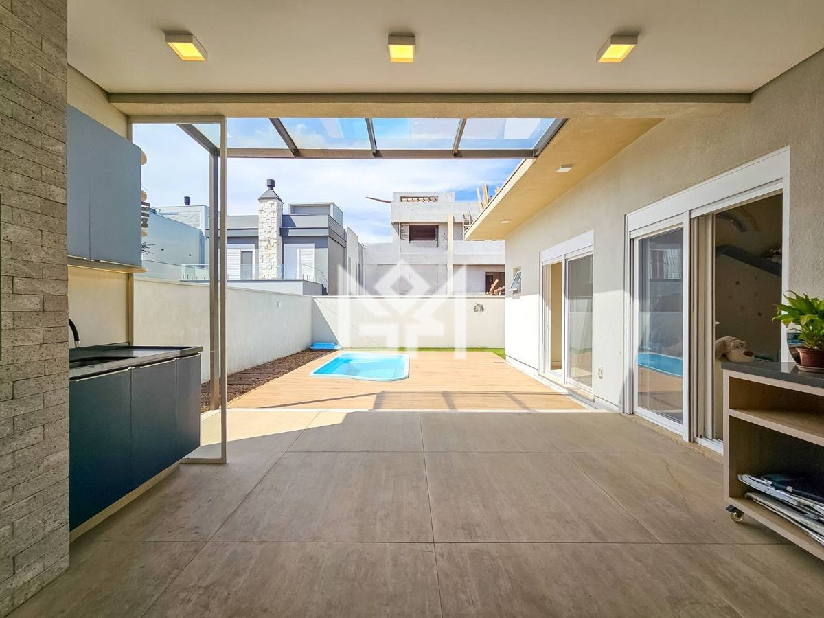 A área interna conta com 185 m² e acabamentos de qualidade em porcelanato e laminado. Já a área externa é um verdadeiro diferencial, com quintal espaçoso, piscina com espera para aquecimento, churrasqueira e espaço gourmet, perfeitos para momentos de lazer e convivência.