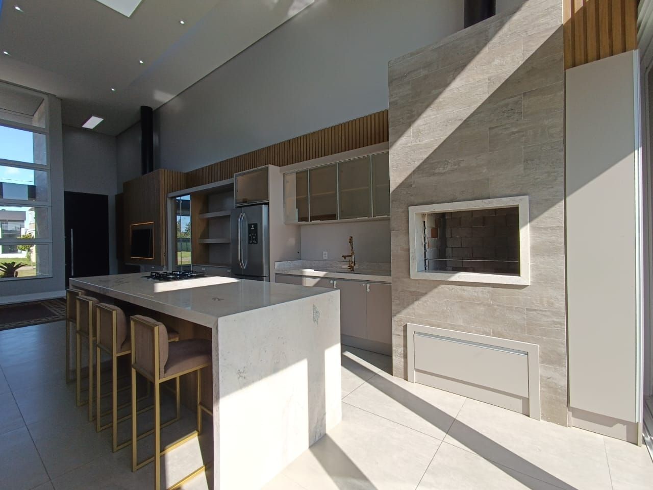 O imóvel conta com 3 quartos, sendo 1 suíte, além de 3 banheiros e 1 sala integrada. Possui churrasqueira para momentos de lazer e convivência. A estrutura contempla internet e Wi-Fi, água individual e portão eletrônico, garantindo praticidade no dia a dia. Dispõe de 4 vagas de garagem.