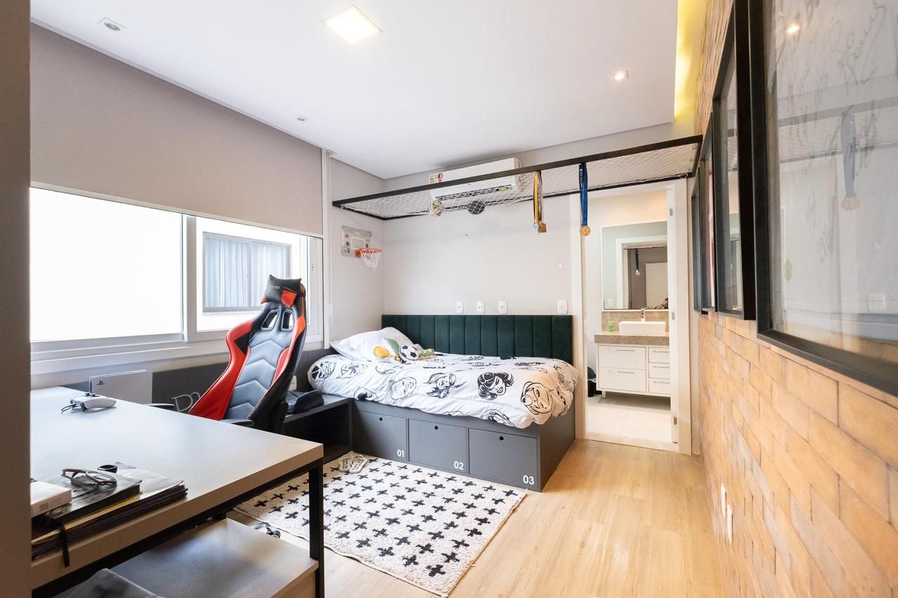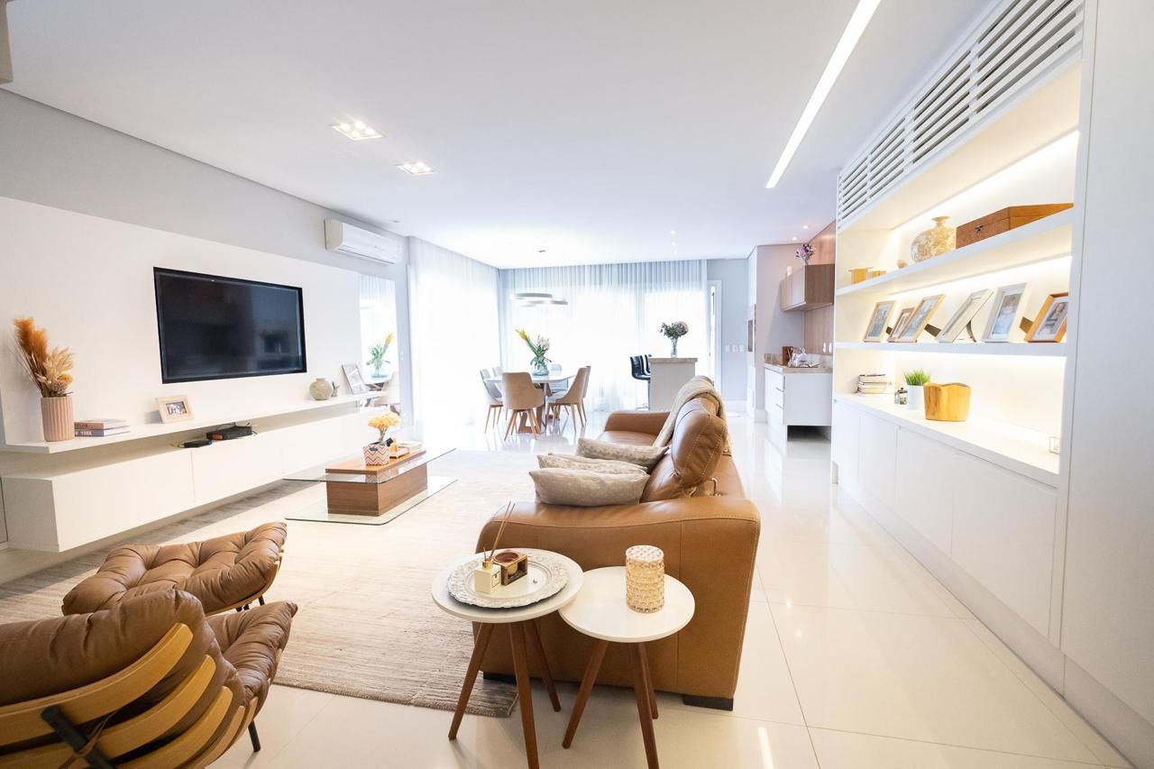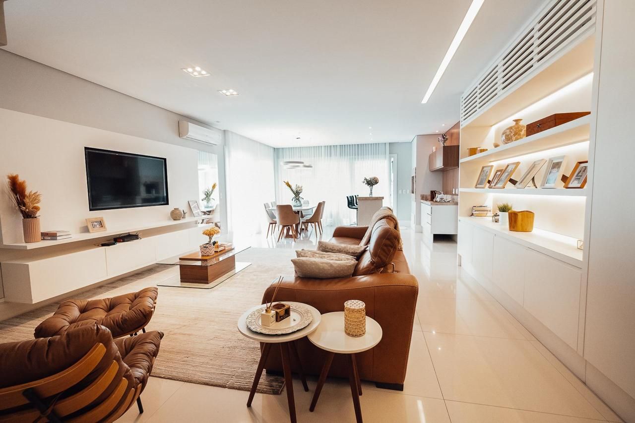 O imóvel está mobiliado e pronto para morar, com ambientes amplos e bem distribuídos. Conta com quatro dormitórios, sendo duas suítes, além de quatro banheiros, oferecendo praticidade e conforto para toda a família. A sala de estar é espaçosa e integrada, proporcionando um ambiente elegante e acolhedor.