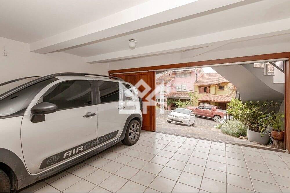 A garagem comporta 2 veículos cobertos, com possibilidade de acomodar mais 2 carros na frente da garagem, ampliando a comodidade. O imóvel une conforto interno, contato com a natureza e segurança em um só lugar.