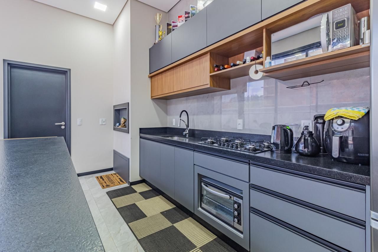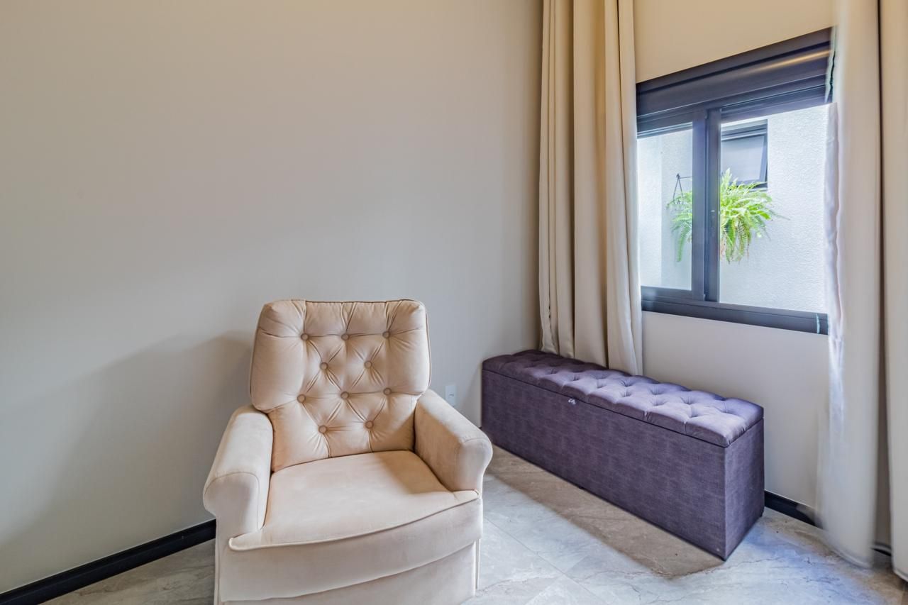 O imóvel conta com jardim de inverno, proporcionando iluminação natural e ventilação, além de churrasqueira e piscina, ampliando as possibilidades de lazer. Dispõe de lavanderia, garagem coberta e móveis sob medida na cozinha, banheiros e em um dos quartos, agregando praticidade ao dia a dia.