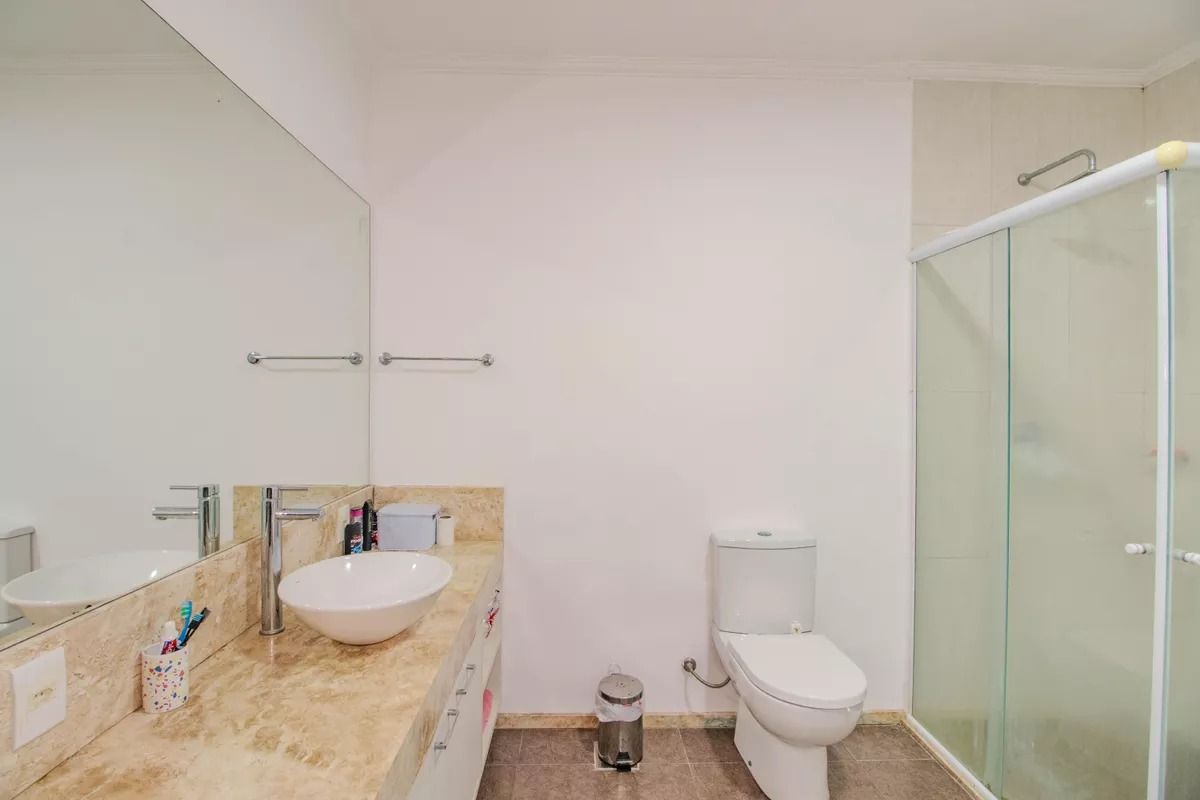 O imóvel conta com 3 quartos, sendo 1 suíte, além de 3 banheiros e 1 sala ampla. Dispõe de lavabo e churrasqueira, proporcionando espaço para convivência. Possui 2 vagas de garagem e não há cobrança de condomínio.
