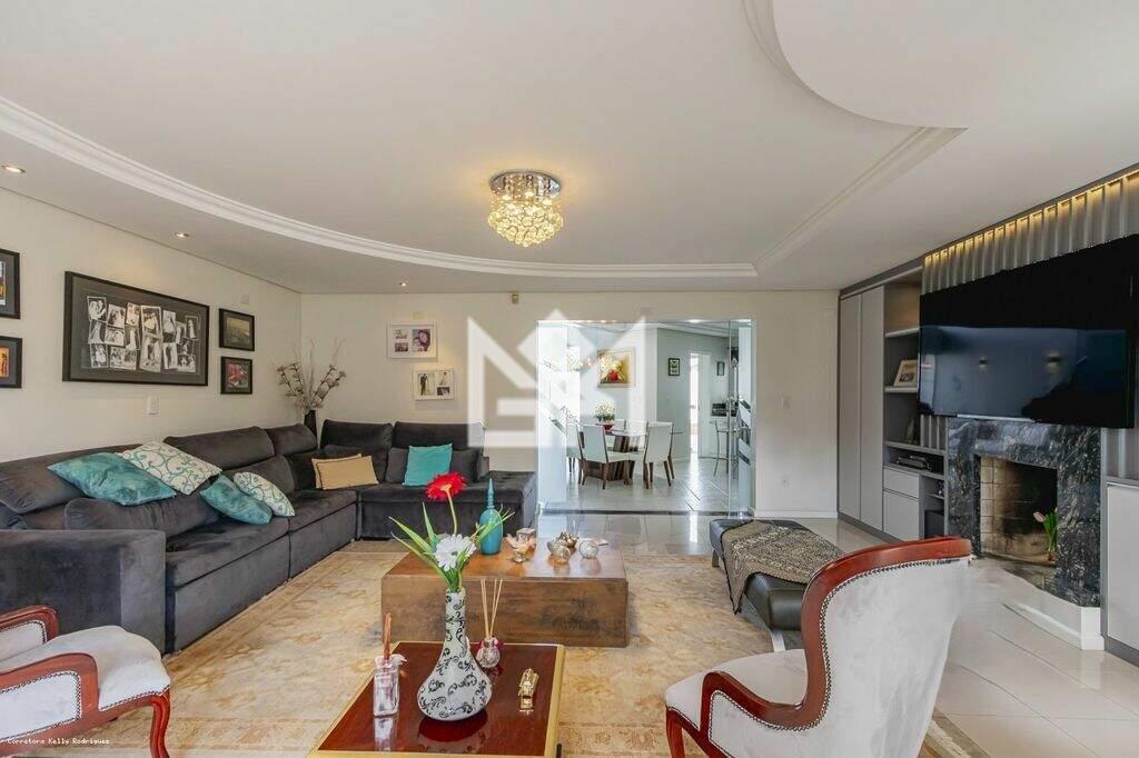 O sobrado conta com 4 suítes com sacada, sendo uma suíte master com hidromassagem e closet, garantindo máximo conforto e privacidade. O living para dois ambientes dispõe de lareira e rebaixo em gesso, criando um espaço elegante e acolhedor. A cozinha é integrada e possui acesso direto ao pátio, além de despensa, banheiro social, banheiro auxiliar e área de serviço funcional.