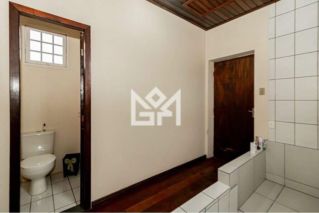 A casa dispõe de 3 dormitórios, sendo 2 suítes, sala, cozinha ampla, 2 lavabos e vaga para 2 carros, distribuídos em 18 cômodos, o que amplia as possibilidades de layout. No pavimento superior, há um dormitório amplo com banheiro grande e closet. O imóvel conta ainda com salas adicionais, depósito e lavanderia, oferecendo suporte completo para diferentes usos.