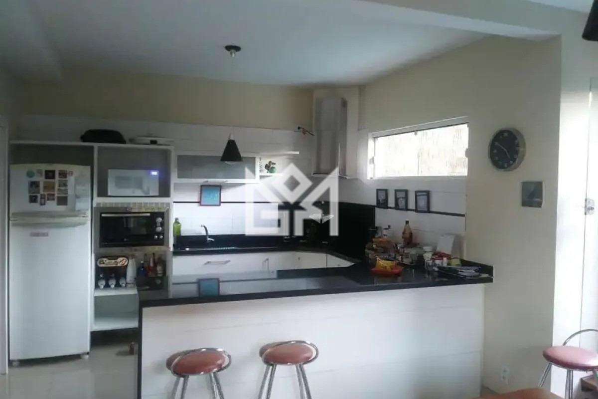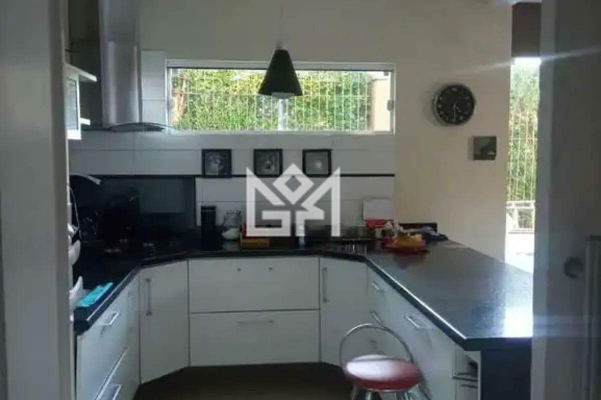 A área social possui living para dois ambientes com lareira, proporcionando um ambiente acolhedor para o dia a dia. A cozinha é no estilo americana e integrada ao espaço gourmet com churrasqueira, criando um ambiente funcional para receber familiares e amigos. O imóvel também conta com banheiro social, lavabo, área de serviço e escadas em madeira nobre com corrimão em aço escovado, trazendo um toque de elegância aos ambientes.