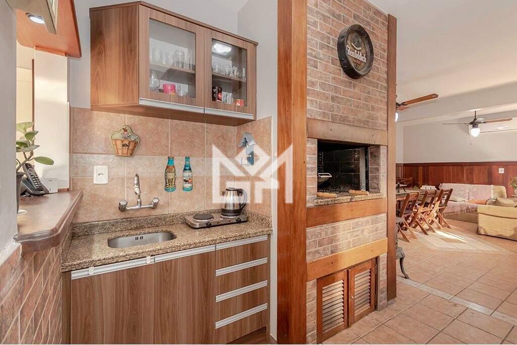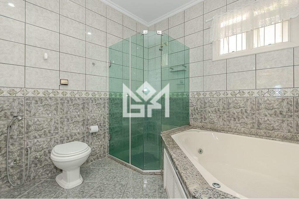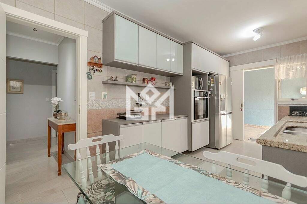 A cozinha ampla, equipada com armários embutidos, é funcional e inspiradora. O imóvel dispõe ainda de sistema de aquecimento eficiente, banheira, chuveiro a gás e garagem para até 4 veículos, com portão automático, agregando segurança e comodidade.