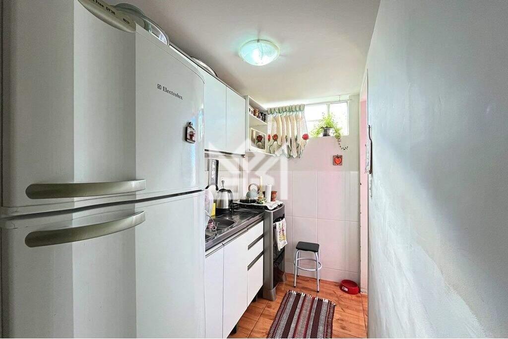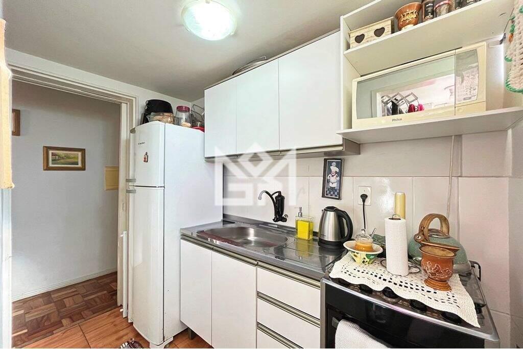 Apartamento 1 dormitório, estacionamento, Condomínio Cristal da Lagoa, no bairro Cristal. Apartamento grande, 39m², 4 andar, frente rua, elevador, com piso parquet, cozinha com área de serviço separada, Ótima posição solar. Condomínio tem elevador, portaria 24h, quadra esportes, salão de festas com churrasqueira, bicicletário, vaga rotativa, com bastante vagas, academia ao ar livre e muito espaço com bancos a sombra. São duas portarias para acesso, tanto pela R Chico Pedro ou Av Cel Massot. O Imóvel está quitado. Aceita financiamento, FGTS e consorcio. Preço e disponibilidade do imóvel sujeitos a alteração sem aviso prévio.