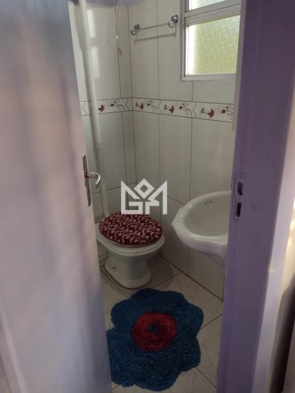 O imóvel conta com dois dormitórios, sendo uma suíte, além de dois banheiros e sala de estar. Possui ambientes funcionais com área de serviço, armários na cozinha e no banheiro, box instalado e abastecimento com água individual, oferecendo praticidade no dia a dia.