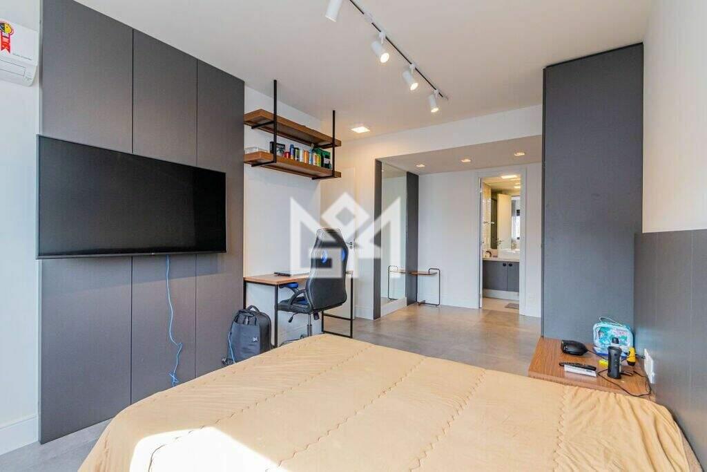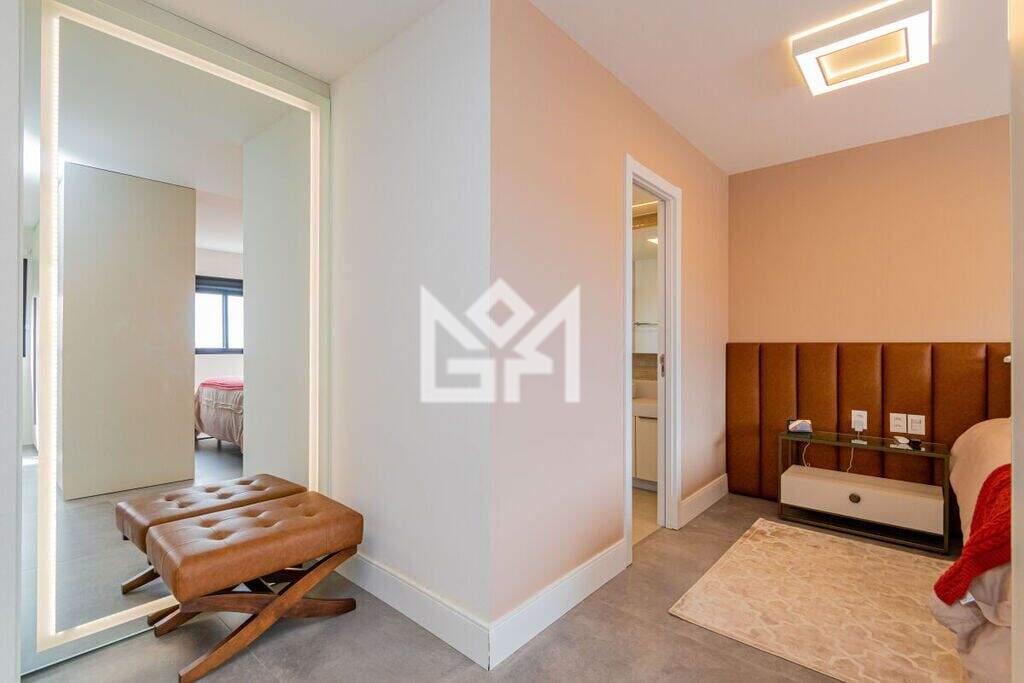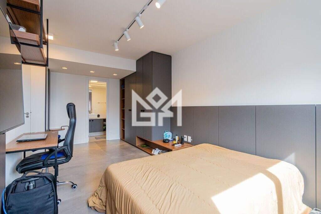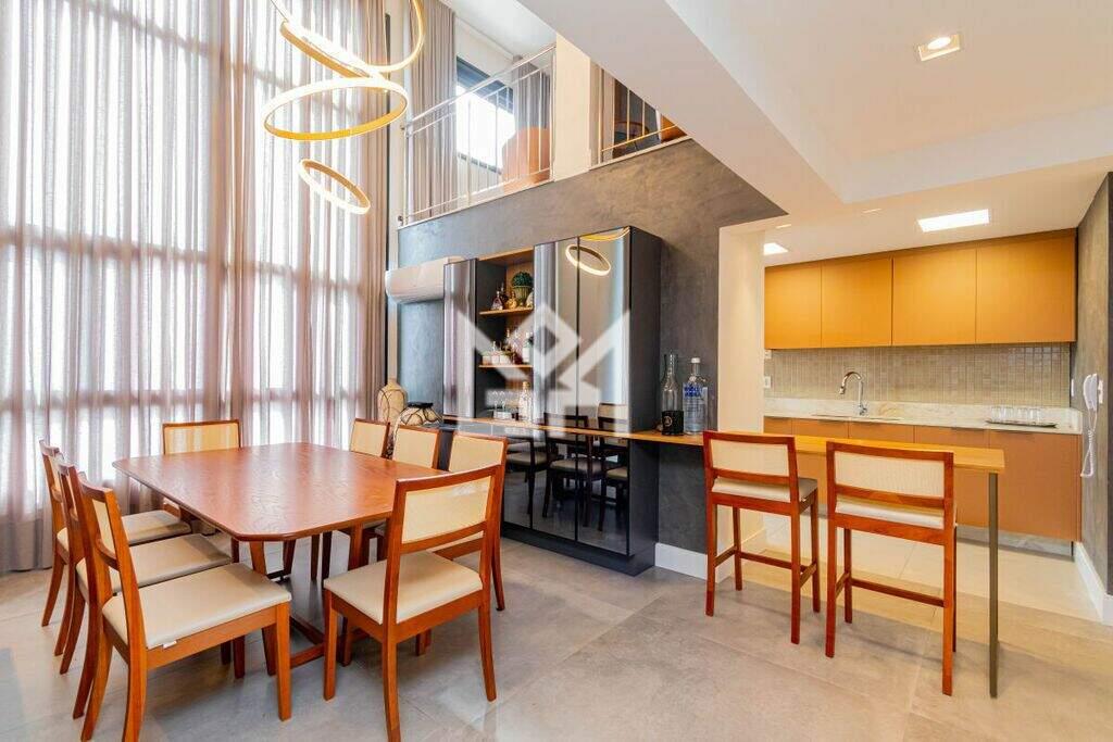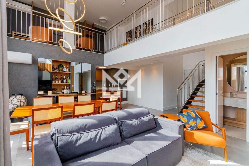 O apartamento é composto por 3 dormitórios, sendo 2 amplas suítes, além de 3 vagas de garagem. Totalmente novo, o imóvel está decorado e mobiliado em alto padrão, proporcionando uma experiência completa desde o primeiro dia. Os ambientes de estar e jantar são integrados, valorizando a convivência, enquanto o mezanino foi configurado como bar e estar íntimo, agregando personalidade, conforto e um toque contemporâneo ao espaço. O projeto de interiores prioriza organização, funcionalidade, arte e modernidade em todos os cômodos.