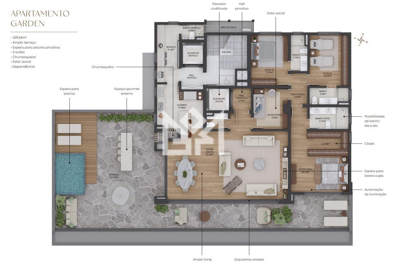 Cobertura de alto padrão localizada no bairro Bela Vista, em Porto Alegre, em uma das regiões mais valorizadas da cidade. O imóvel possui 404,52 m² de área interna, com ambientes amplos, bem distribuídos e pensados para oferecer conforto, privacidade e qualidade de vida.