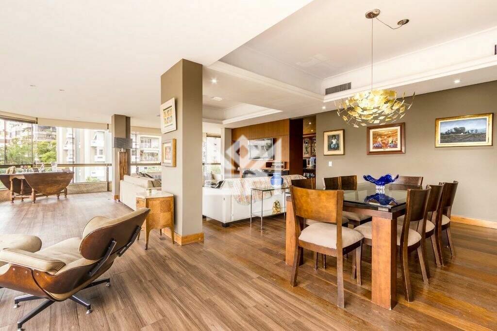 Amplo apartamento de 244m² com 2 suítes completas, sendo uma master com closet e sacada integrada. Living com sacada integrada com orientação solar NORTE/LESTE, estar íntimo (ou home oce), espaço gourmet com churrasqueira. Preço e disponibilidade do imóvel sujeitos a alteração sem aviso prévio.