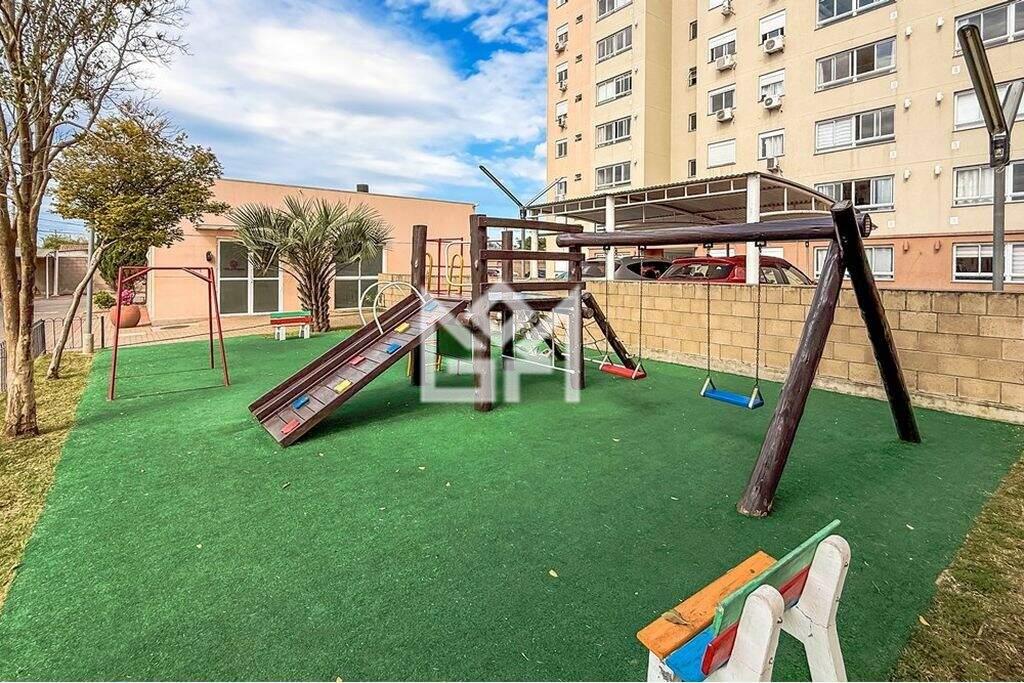 Apartamento recém reformado localizado na rua Joaquim Caetano 660 no 3 andar de condomínio fechado no bairro Fátima em Canoas com 51,5m2 de área total distribuídos em cinco cômodos incluindo dois quartos cozinha gourmet com armários embutidos e banheiro com chuveiro a gás, edifício com elevador zeladoria segurança 24 horas câmeras interfone e vigia oferecendo acessibilidade e tranquilidade, condomínio com churrasqueira quadra poliesportiva salão de festas e área de lazer em localização privilegiada próxima a vias importantes transporte público escolas igrejas parques e comércio local, imóvel pet friendly com vista aberta para o norte aceitando financiamento sendo opção funcional e confortável para morar com qualidade de vida. Preço e disponibilidade do imóvel sujeitos a alteração sem aviso prévio.