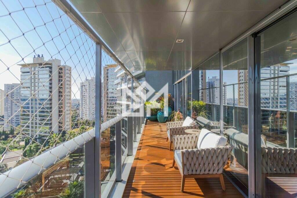 O imóvel conta com 4 suítes, garantindo conforto absoluto aos moradores, além de 14 banheiros, um diferencial raro que atende com excelência famílias maiores ou quem valoriza funcionalidade em todos os ambientes. A ampla área externa potencializa as possibilidades de lazer e convivência, permitindo a criação de espaços personalizados e exclusivos. O apartamento dispõe ainda de 4 vagas de garagem, agregando comodidade e segurança.