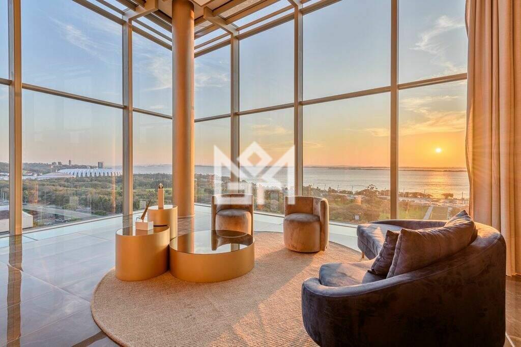 Apartamento com a melhor vista de Porto Alegre, vista eterna para o pôr do sol mais lindo do Brasil. São 164m2 de área privativa com 3 suítes, ampla sala de estar com churrasqueira, estar íntimo ou escritório, lavabo, cozinha fechada com possibilidade de integração e área de serviço completa com banheiro auxiliar. São 3 vagas de garagem cobertas. O condomínio conta com diversas opções de lazer como piscina com raia de 25m, piscina infantil, brinquedoteca, salão de festas, playground, portaria 24h e um espetacular espaço gourmet no último andar, o cubo de vidro. A localização privilegiada permite fácil acesso a bancos, escolas, faculdades, farmácias, hospitais, igrejas, padarias, praças, rodovias, shoppings e supermercados. Agende já sua visita. Informações sobre o condomínio, Cyrela Goldsztein traz a Porto Alegre um dos empreendimentos mais aguardados, Atmosfera Sky. Em uma localização excepcional com vista definida para o pôr do sol do Guaíba e Parque Marinha do Brasil, no bairro Menino Deus, o empreendimento exclusivo conta com uma torre em um terreno de 7130m2, apartamentos de 3 ou 4 dormitórios de 2 a 4 vagas de garagem com 137m2 a 316m2 privativos. Infraestrutura completa de lazer com piscina climatizada com raia de 25m e deck molhado, piscina infantil climatizada, fitness com 124m2, brinquedoteca com 100m2, playground externo, salão de festas com 144m2 com terraço e um espaço gourmet no último andar com vista sensacional do pôr do sol com sky view. Plantas muito bem planejadas, todas de frente a fundos com vista magnífica. Preço e disponibilidade do imóvel sujeitos a alteração sem aviso prévio.