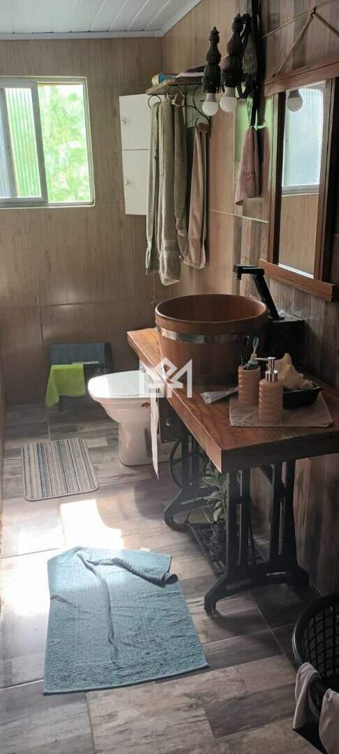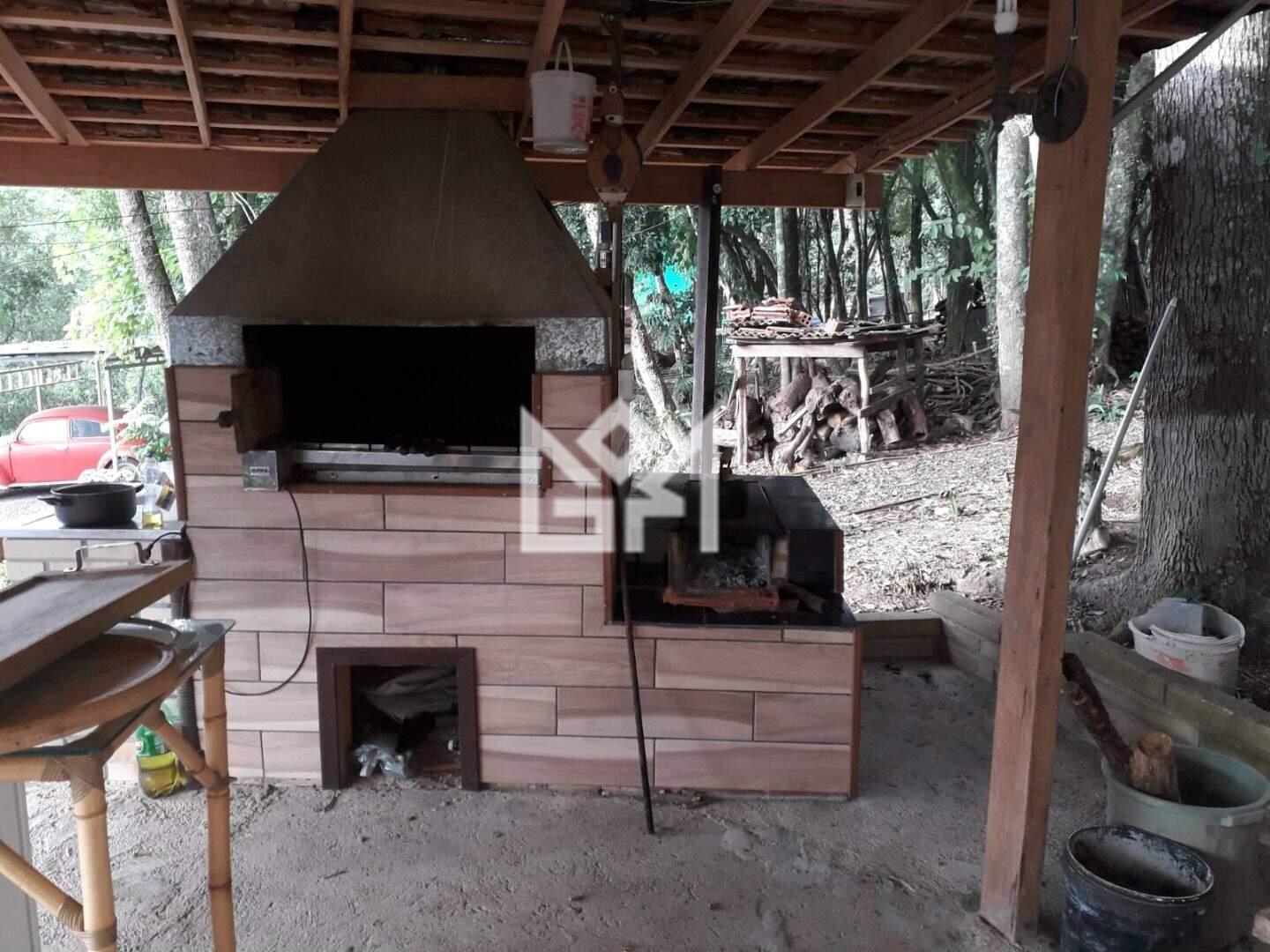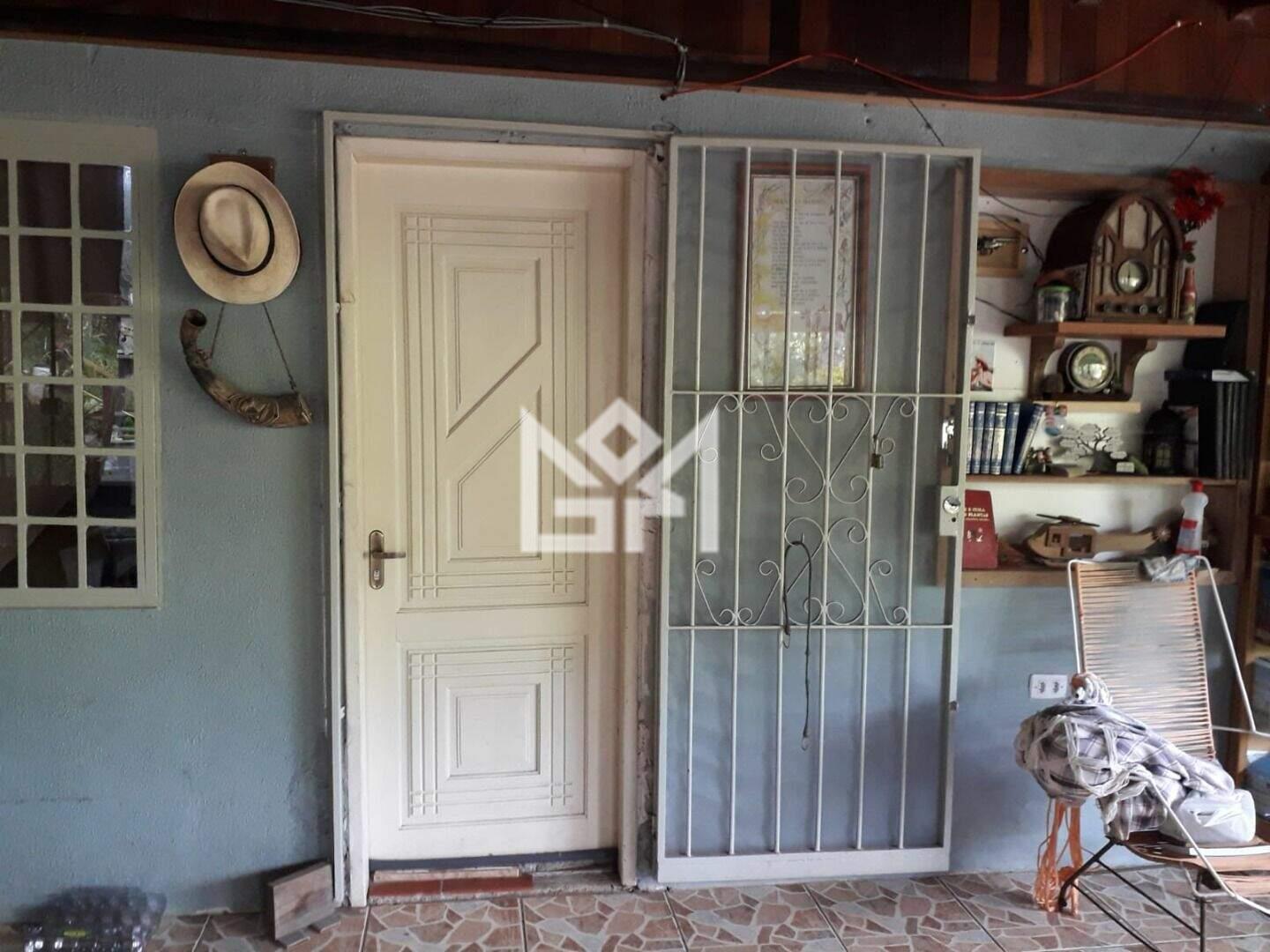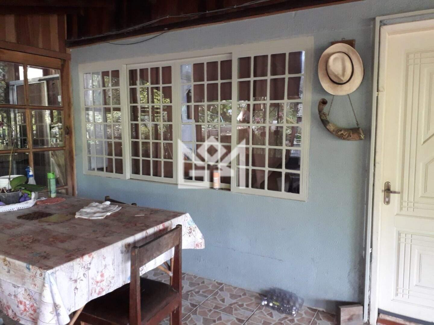 A casa principal possui 70m² de área construída, distribuídos em dois quartos, sendo uma suíte com banheira de hidromassagem, dois banheiros, ampla área frontal envidraçada, porão e garagem coberta para até três veículos. O imóvel conta ainda com poço artesiano, área de serviço e um terreno arborizado com árvores frutíferas e nativas, garantindo conforto, autonomia e contato direto com a natureza.