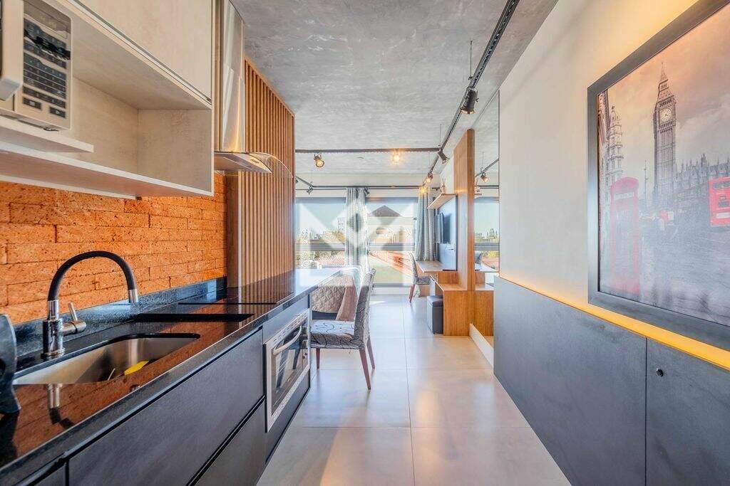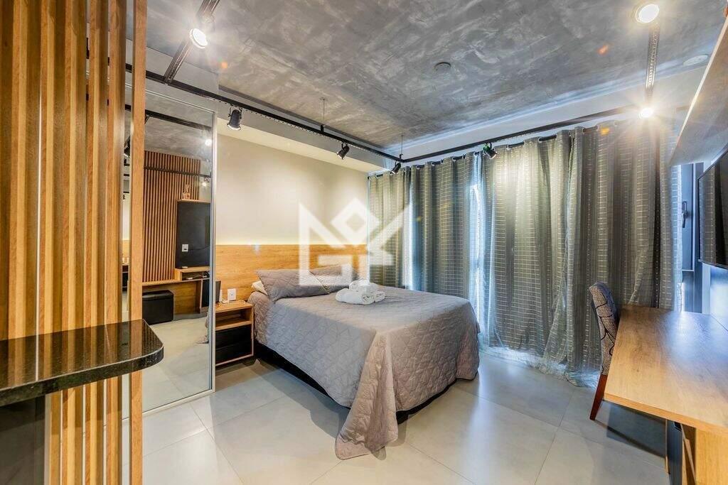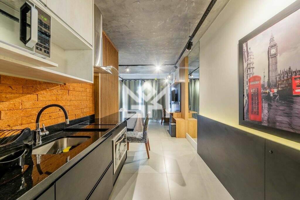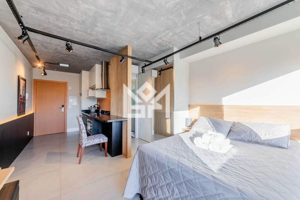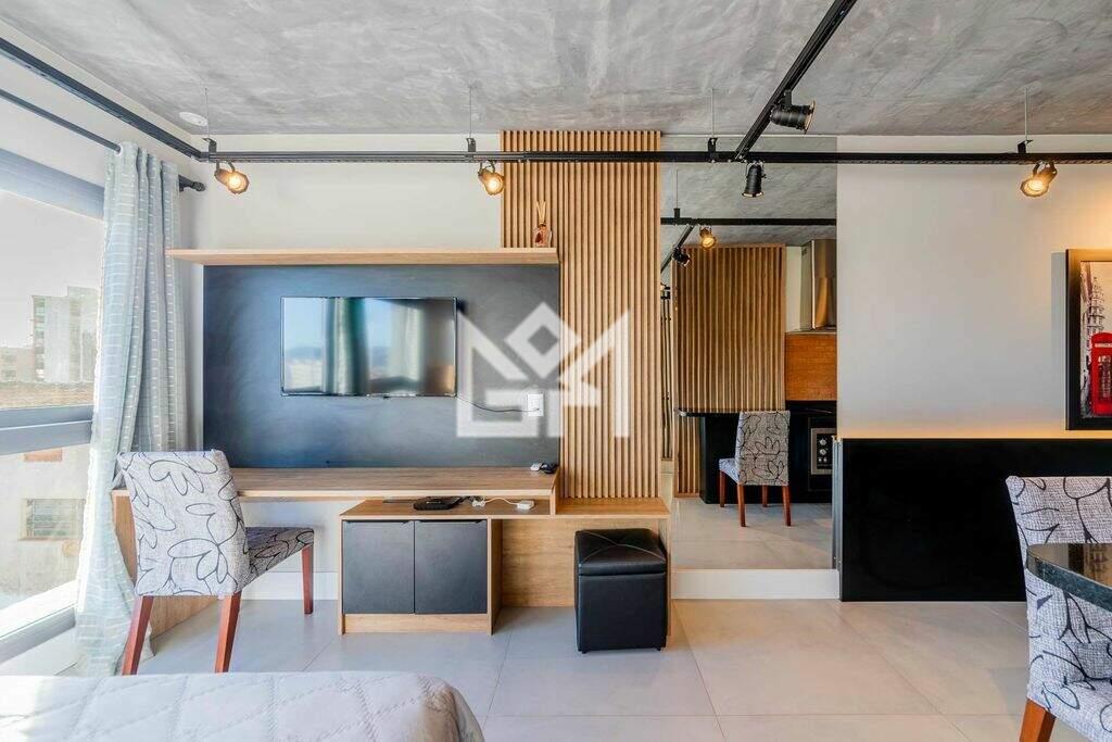 Com 28,41m² de área privativa, o imóvel está totalmente decorado e mobiliado, localizado em andar alto e com ótima posição solar. Os ambientes de living, dormitório e cozinha são integrados, com esquadrias do teto ao chão, proporcionando excelente iluminação natural e sensação de amplitude. O banheiro social completa a planta funcional e elegante. O apartamento é entregue com o kit mais completo de mobília, eletrodomésticos, cortinas e iluminação, pronto para morar ou rentabilizar.
